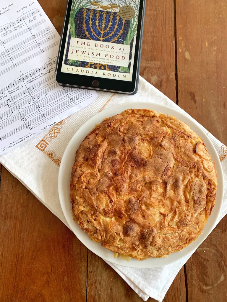 Visto che la data ricorre tra poco, ho preparato una torta di mele della tradizione ebraica, della grande antropologa culturale britannica, di origine egiziana, Claudia Roden. Chi si occupa di culinaria, anche da dilettante, come me, deve riconoscere la grandezza intellettuale della Roden. Autrice soprattutto di libri di cucina mediorientali, tra i quali A Middle Eastern Feast (1968), Arabesque (2006) – ma suo è peraltro un bel libro intitolato The Food of Italy (1990) – la Roden è riuscita a diffondere la passione per le tradizioni delle cucine più svariate, dal Marocco alla Turchia, dal Libano a Israele. Questa torta, tratta da The Book of the Jewish Food (1997), vincitore del prestigioso “James Beard Award” è, per essere più precisi, della tradizione ebrea sefardita. Semplice e deliziosa, come lei stessa scrive nell’introduzione alla ricetta, è un inno alle mele: l’abbondante quantità fa la differenza in questo dolce che si appoggia tutto sulla sofficità degli albumi a neve, senza altri additivi chimici. Una bontà della quale si resta sedotti.