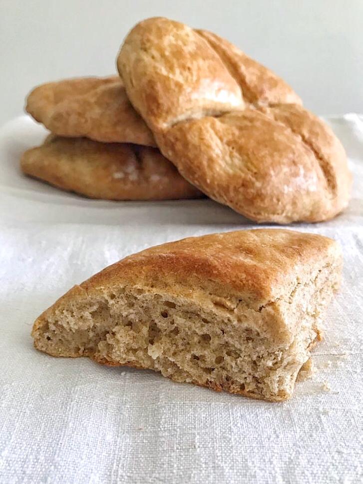 Disporre i dischi sulle teglie preparate e spennellare con uovo sbattuto o latte. Cuocere in forno preriscaldato per 15-18 minuti o fino a che sia ben dorato, ben lievitato e ben cotto. Lasciar raffreddare leggermente prima di spezzare ogni panino in 4 lungo le linee già segnate. Meglio consumare subito, in giornata. Altrimenti, avvolgere in una pellicola trasparente e congelare, se lo si vuole.