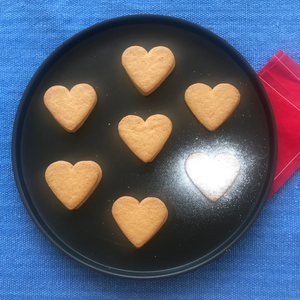 Per questa ricetta ho sofferto «bulling» da aspirante pasticciere! Da tempo avevo adocchiato questi biscotti nel libro «Fika and Hygge», della cara Brontë Aurell e avendo trovato in un supermercato delle formine a forma di cuore (si, a forma di cuore) mi sono ricordato che nel libro c’era una foto simile e mi sono proposto di farli subito. Non vi dico i miei amici! Mi hanno rimproverato di aver scelto una forma troppo sentimentale e fru-fru… insomma… tutto un prendermi in giro… ma io non volevo assolutamente formine circolari, né le solite stelle stelline, né triangoli vari… E siccome siamo a due settimane dal Natale e sono buono… glieli ho offerti e… «ne mangiarono tutti felici e contenti».