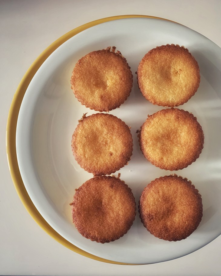 4. Mentre le tortine sono in cottura, preparate lo sciroppo. Mettete il succo di limone e lo zucchero in una casseruola e portate a ebollizione su fiamma medio-bassa. Mescolate finché lo zucchero non sarà sciolto e fate sobbollire per 2–3 minuti. Togliete dal fuoco e non appena sfornate le tortine irroratele con abbondante sciroppo. Fate raffreddare le tortine prima di toglierle dagli stampi.