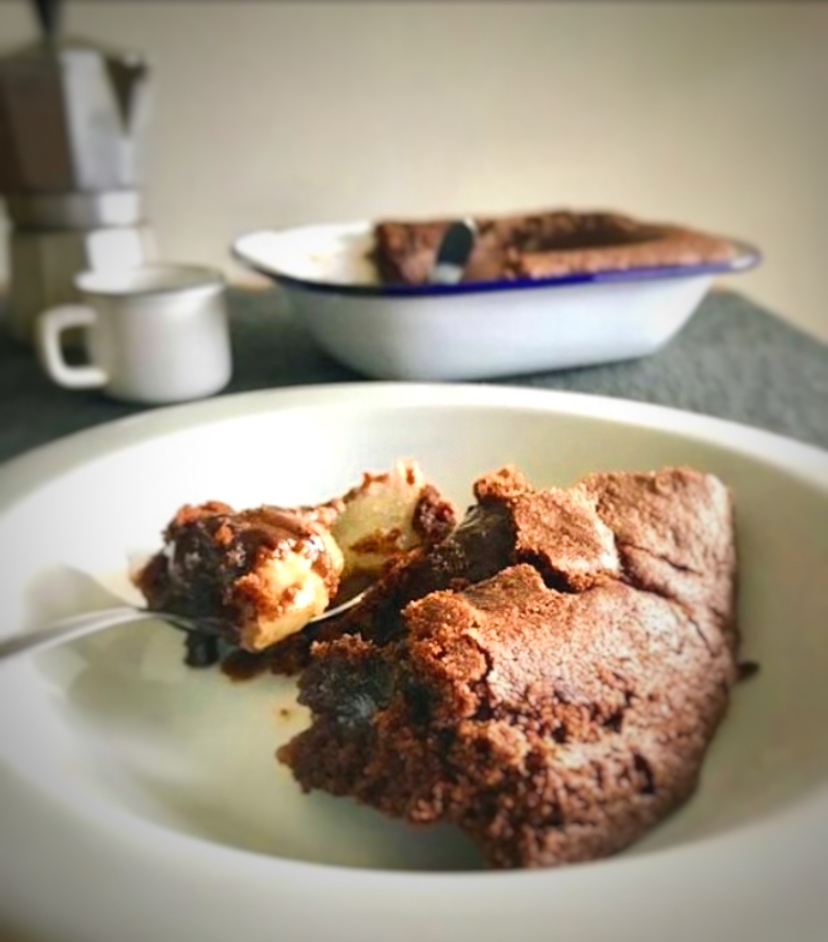 Preriscaldate il forno a 200 gradi e imburrate il piatto di ceramica in cui preparerete il pudding. Drenate le pere, se sono quelle sciroppate in lattina, oppure se sono quelle mature, “nature”, semplicemente sbucciatele e privatele della parte interna con un cava torsoli e finalmente adagiatele sulla pirofila prescelta. Che sia bella perché andrà così a tavola, in tutto il suo splendore.