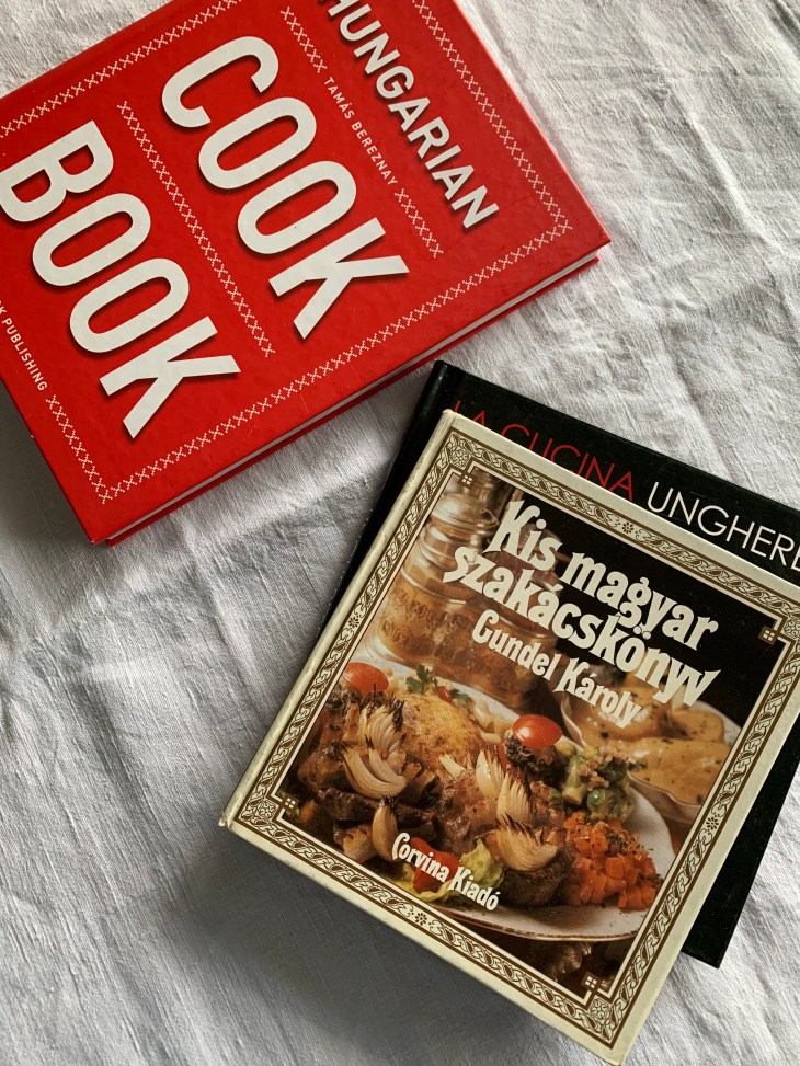 Per la ricetta ho seguito le memorie delle mie papille gustative…., e poi vari libri che ho a casa, primo fra tutti “Kis magyar szakácskönyv” (“Piccolo ricettario ungherese”), del grande gastronomo ungherese Károly Gundel, e altri di Mágdolna Hargyattai, Ildikó Kolozsvári e Tamás Bereznay, ma anche i consigli di Marika-néni, la mamma della mia amica Karolina (che mi ha addirittura mandato un simpatico audio in ungherese!)