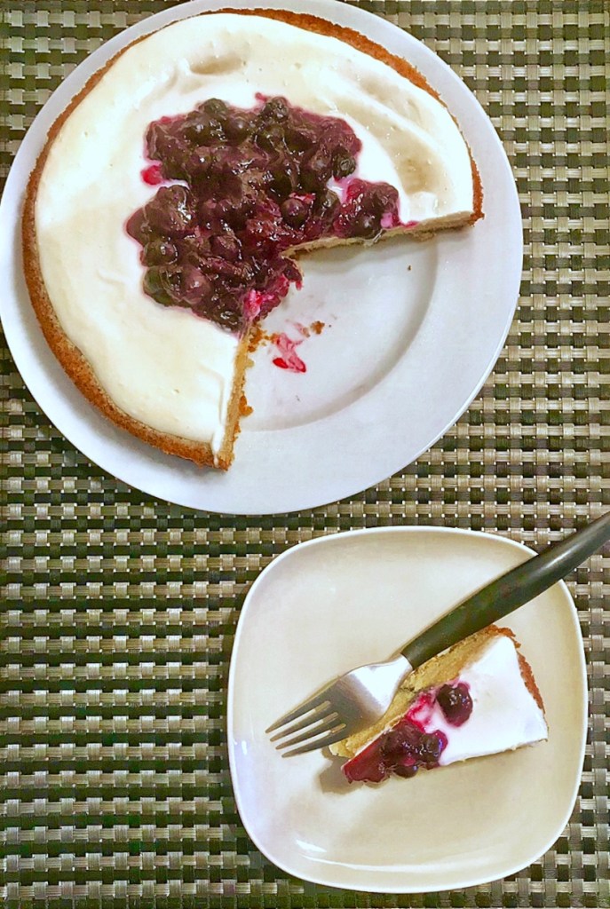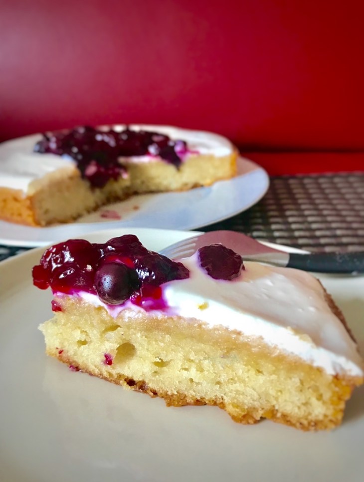 Detto questo, vi lascio la ricetta di una torta vegana di Nigella. Una torta al limone, delicatissima, profumatissima, che è incoronata da una gustosa salsa ai mirtilli, e senza la quale non sarebbe più la stessa.