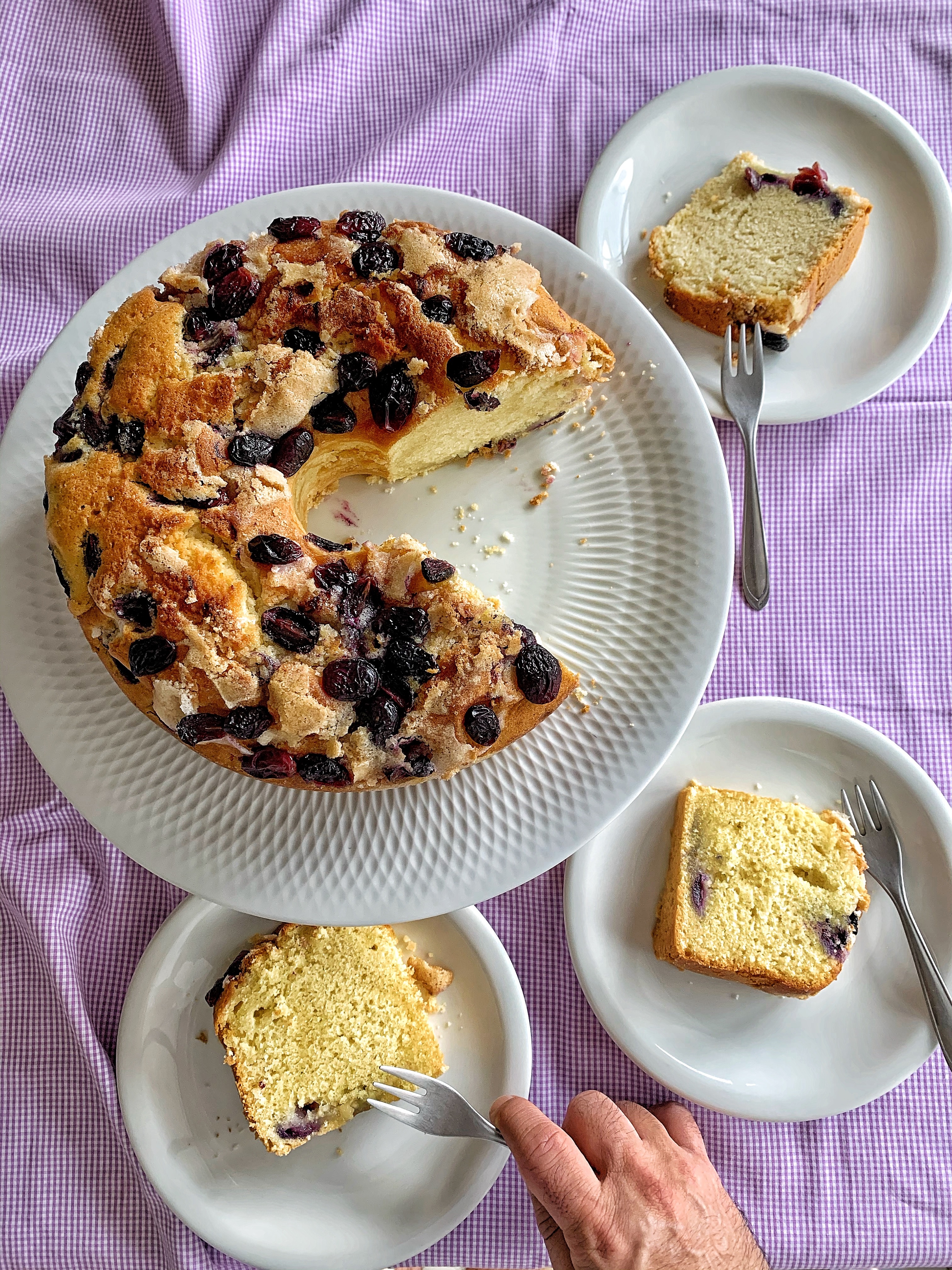 Vi invito a una fetta di questa straordinaria ciambella all’uva e al vino bianco di Ottolenghi. Con lui non ci si sbaglia mai.