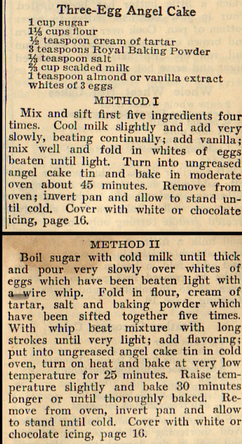 Nelle mie ricerche culinarie sulle ricette vintage, ho scoperto e preparato una Mock Angel Cake, cioè una Angel Cake per risparmiatori, cioè con soli tre albumi.