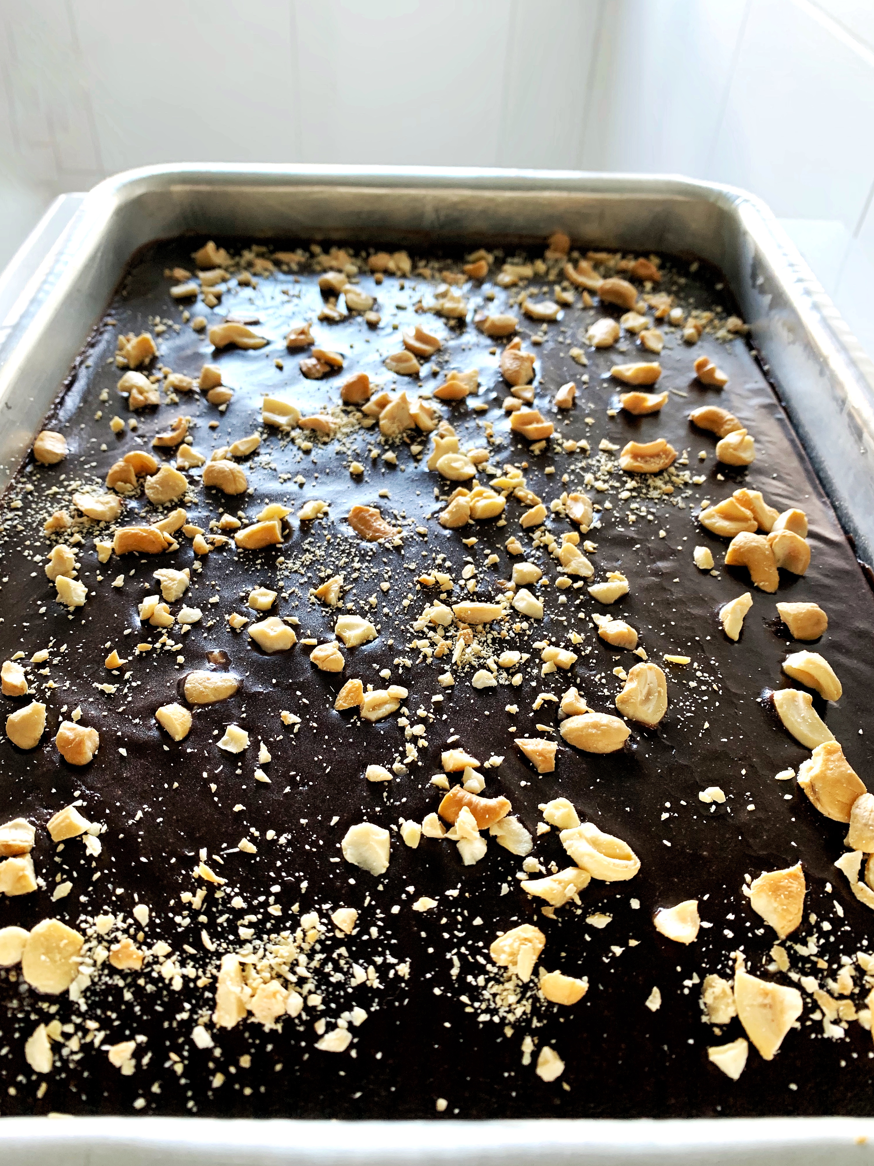 Bene, questa torta è una delle più buone e cioccolattose che abbia mai provato. E la famigliola di amici con cui l’ho condivisa annuisce compatta (l’hanno finita in men che non si dica!!!!). Si tratta di una ricetta vintage della cucina americana del Sud. Alcuni dicono che si chiami “Texas Sheet Cake”, perche’ il dolce e’ grande quanto il Texas. In effetti è una torta che si prepara in una teglia grande, rettangolare. Le noci sono obbligatorie, visto che il Texas è uno degli stati che ne producono di più. Potete tagliarla a quadretti e magari regalarli come se fossero dei cookies o finte brownies. Ad ogni modo, è spettacolare.