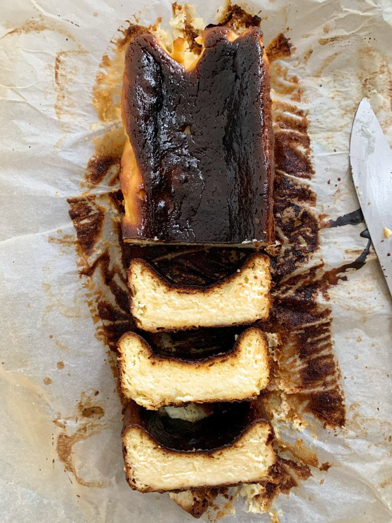 BURNT BASQUE CHEESECAKE, IN UNO STAMPO DA PLUMCAKE, E UN ANEDDOTO SUI DOLCI BRUCIATI