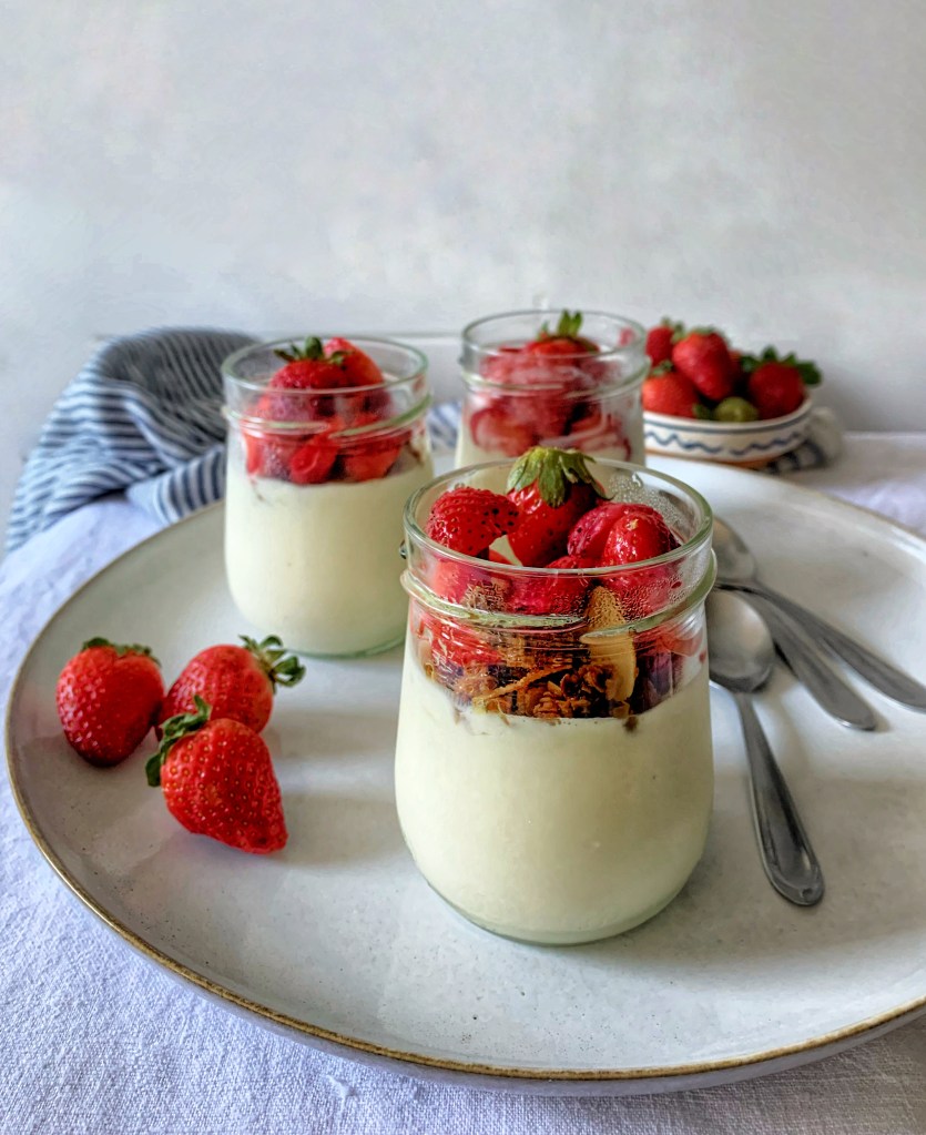 Versare il composto (la panna “cotta”) in 4-6 bicchierini. Far raffreddare in frigo per un minimo di 6 ore, ma preferibilmente per tutta la notte.