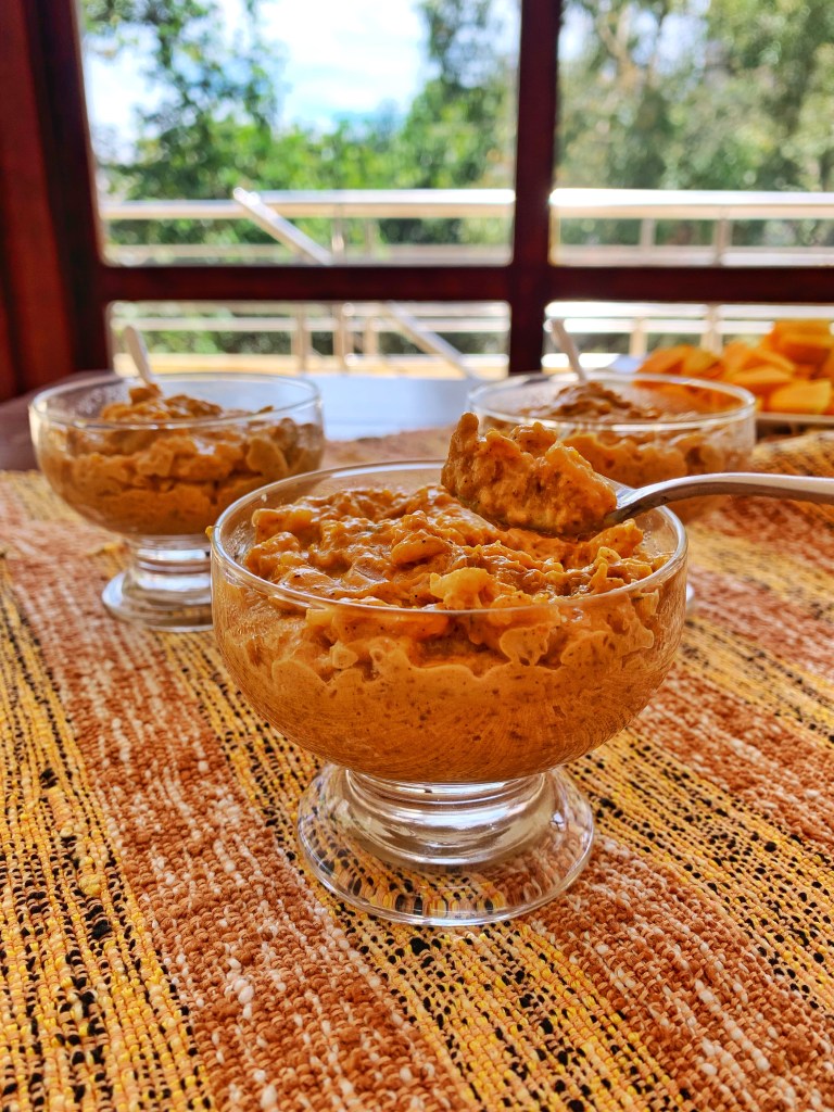 La zucca conferisce una dolcezza terrosa a questo piatto, che a volte viene consumato a colazione in Uzbekistan. Ispirato dai sapori della via delle spezie, questo risolatte potrebbe essere particolarmente apprezzato anche dai bambini. Lo sciroppo di datteri è un dolcificante naturale che rilascia una profondità di melassa. Se non l’avete, mettete del miele, magari di castagno. Tuttavia, assaggiate sempre, prima di aggiungerlo al budino, perché la zucca potrebbe essere abbastanza dolce e non è bene sopraffare i sapori sottili delle spezie e della stessa zucca con la dolcezza eccessiva del miele o dello sciroppo di datteri. Se uno ha il “dente dolce”, come dicono gli anglosassoni, versate dell’ altro miele o sciroppo nelle ciotoline in cui servirete il risolatte, oppure se preferite che il dolce sia smorzato, provate con dello yogurt greco o con della panna acida. Indovinate cosa ho messo io ?