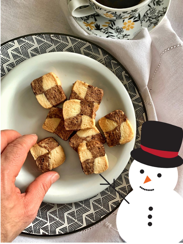 Questi biscotti a scacchiera sono tipici del Natale scandinavo. Ma dovete sapere che una volta li chiamavano, non si sa bene il motivo, “Brysselkex” (biscottini di Bruxelles) secondo un famoso ricettario svedese del 1924, “Svensk Konditorbok”. Sono facili, buoni e si mantengono un bel po’ di tempo. Fateli e nascondeteveli per la nostalgia del dopo feste.