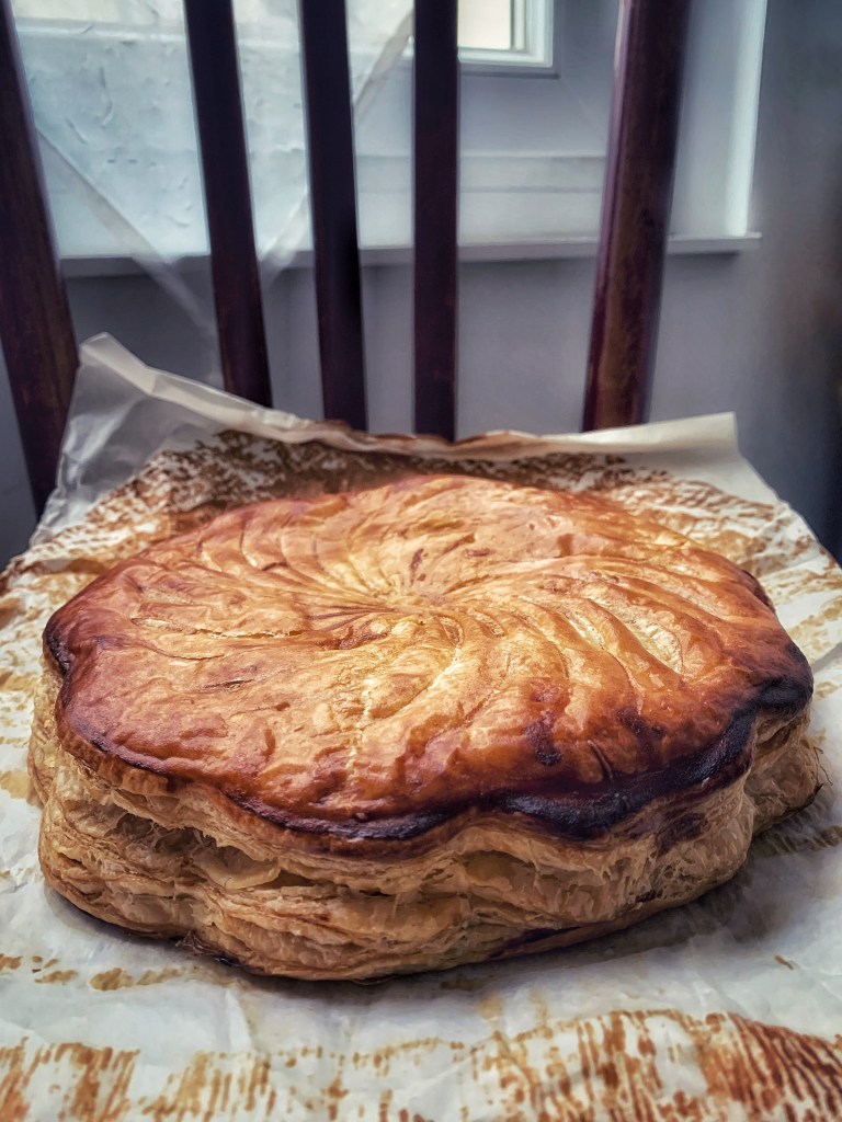 Ciao Sicilia, arrivo in Francia, 48 ore a Parigi per un test PCR e poi destinazione “lavoro”… Mi sono perso la Befana in Italia, ma qui non ho resistito. La mia amica che mi ospita sempre nella Ville Lumiere mi dice: “come sai, il forno è tuo. Sai fare la galette des rois?” Risposta: “certo!”. Non è vero. Cerco subito su internet e trovo una versione bella di David Lebovitz, uno di quelli che, secondo me, conosce la cucina francese come pochi. Si fa in una mattinata. Ma per chi soffre di astinenza da forno e la giornata è uggiosa e fredda e rimpiange aver lasciato il sole siciliano, si fa questo e altro… Il risultato è che arriva in ritardo su Instagram ma vi giuro che è una perdizione!