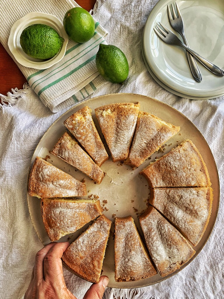 Invece, questa ciambella… è una cosa sublime e delicatissima. Qualcuno di voi mi ha ricordato che dalle mie parti per san Biagio si mangiano delle ciambelline all’olio (mia mamma ha aggiunto, perentoriamente: “devono essere benedette, altrimenti non valgono!”). Allora ne ho fatto una per la mia colazione. Il limone qui ha prezzi esorbitanti. Anche il lime ci sta benissimo. Soffice, quasi vellutata, questa ciambella viene da una ricetta tratta dall’ultimo libro della grande Dorie Greenspan, “Baking with Dorie”. Dorie dice di riprodurre una ricetta di una ciambella mangiata al caffè Roscioli di Roma, durante una vacanza romana con suo marito, e non averla potuta più dimenticare. Effettivamente… per questo l’ha chiamata ciambella “colazione a Roma”.