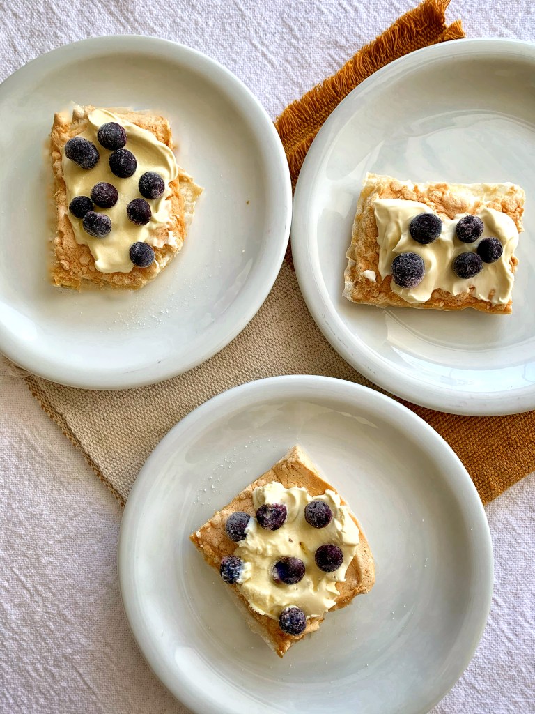 Il “pudding dimenticato” ha un sapore quasi poetico, un po’ infantile, zuccherino e gommoso al punto giusto. Metteteci su la frutta che più desiderate: mango, lamponi, fragole, ribes, o i mirtilli, come me.