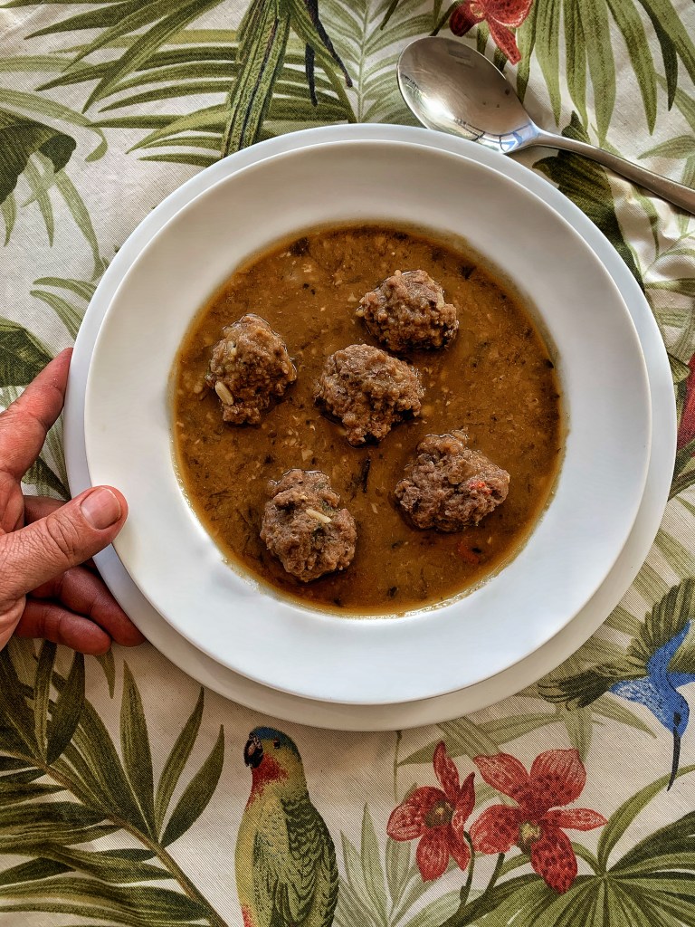 Anch’io mi unisco a questo grido di speranza con #cookforiran, pensando che vi è anche una ragazza italiana, prigioniera nelle carceri iraniane. Ho scelto una delle zuppe preferite della famiglia di @sabrinaghayour, tratta dal suo bel libro “Persiana”. I persiani amano le polpette, a quanto sembra. Ci sono tante ricette con le polpette. Anche noi siciliani le amiamo. Deve essere perché la cucina parla ai cuori mediterranei, e parla con senso di pace! E poi il succo di melograno, trovato miracolosamente in un negozio etnico locale, è il massimo in questa ricetta che vi invito a rifare subito per le nostre amiche iraniane (e anche un po’ per voi!).