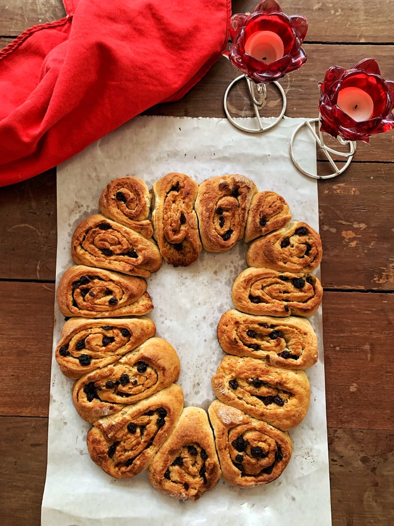 E visto che Natale si avvicina, abbiamo pensato a una ghirlanda di pane/panini/brioche! Non male, no ? Se vi piace l’idea, vi aspettiamo con le vostre proposte. Unico scotto (hahahaha) dovete taggarci nei post e/o nelle storie, perché solo così potremo condividere le vostre proposte. La ricetta della mia corona è di Yvette Van Boven, da Home Made Christmas, e ha una caratteristica molto nordica: l’impasto non è dolcissimo. Potete accompagnare i panini con salmone o prosciutto e quant’altro di salato, oppure, per chi ha lo #sweettooth come il sottoscritto, spalmarci della nutella o della marmellata, come se piovesse, di nuovo, come se piovesse. Viva Santa Bibiana, che protegge i lievitati!!!!