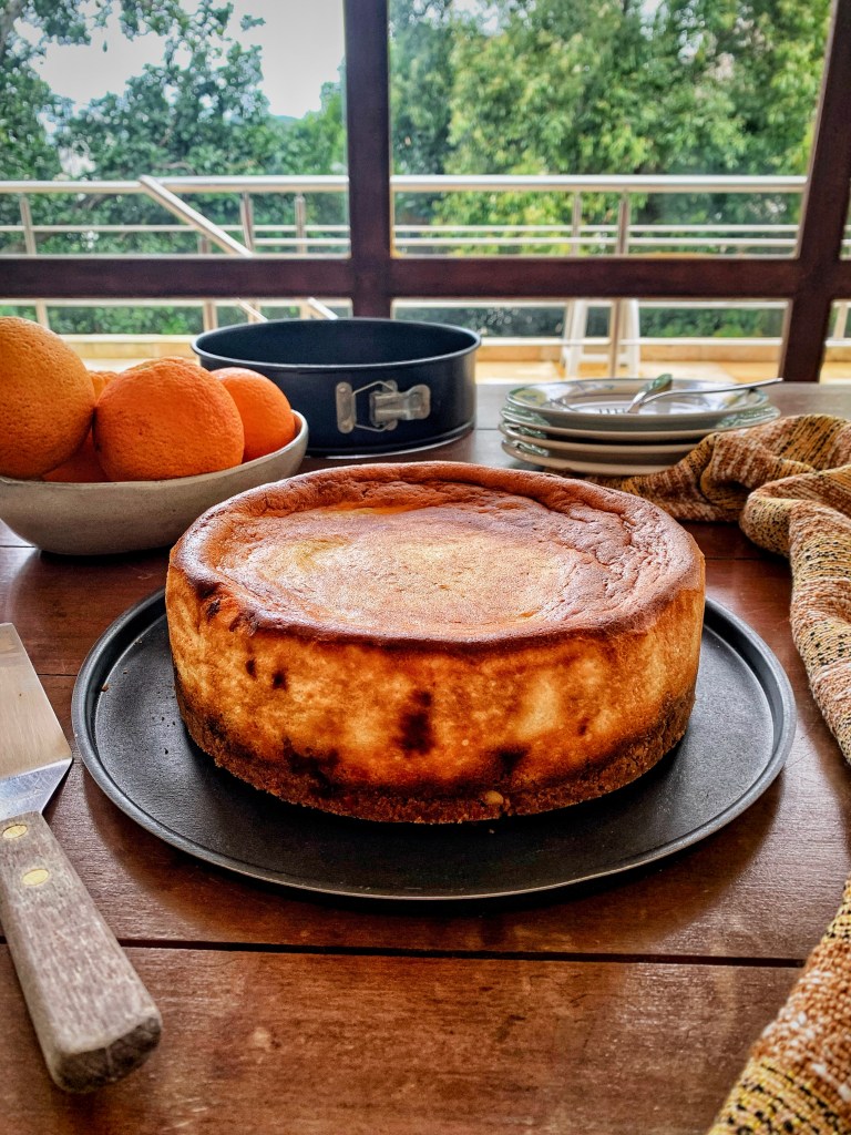 È una cheesecake ricca, ottima anche perché gli ingredienti sono ancora tradizionali (i fichi secchi e le arance tornano qui con grande prepotenza!). A parte questo, ha una consistenza più leggera di altre cheesecake (genio di @ottolenghi e @helen_goh_bakes ), grazie agli albumi montati a neve e riempiti d’aria, che vengono incorporati nell’impasto appena prima della cottura. Non vi prendete di sgomento se in forno si solleverà un po’ come un soufflé, e poi si sgonfierà quando sarà fredda.