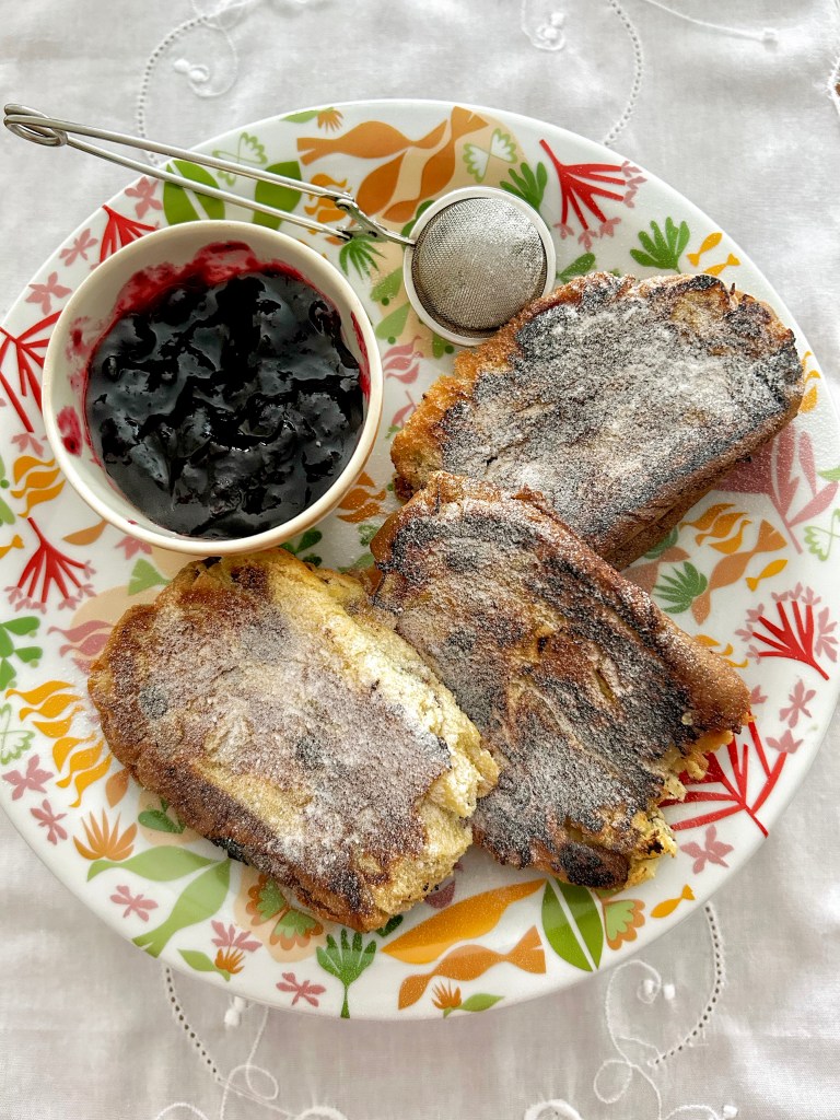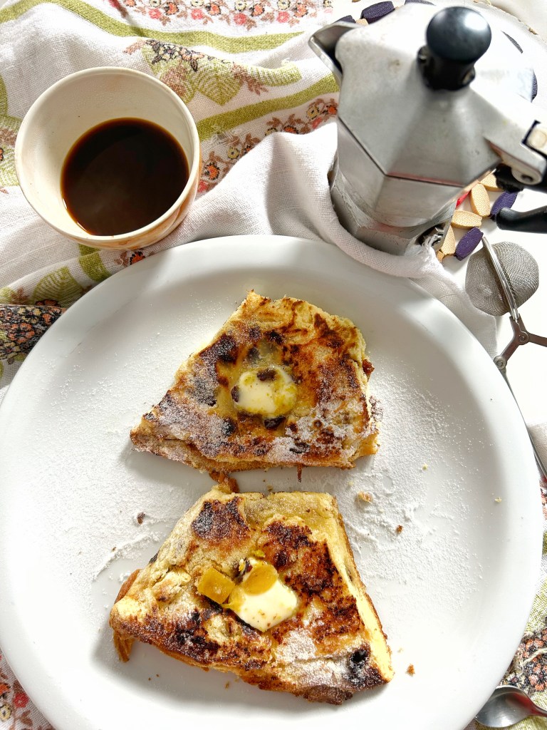 Ero indeciso se pubblicare il secondo “leftovers day”, ma è talmente buono che approfittatene… e conservatelo anche per Pasqua, per la colomba e per il cioccolato che vi avanzerà dalle uova… Nigel Slater inventa cose talmente deliziose, che ognuno può dire: dai, posso imitarlo, creare, sentirsi un leader in cucina. Nigel Slater mi è sempre sembrato come un bambino che continua a leccarsi le dita con le godurie che prepara. Per questo mi piace sempre di più il cookalong #wednesdayswithnigel proposto da Oksana, Stefanie e Zahra ( @oksanaritchie @teffe_kocht @culyzaar ).Sto imparando che in cucina sapere le combinazioni di sapori dipende dall’esperienza, dalla conoscenza, ma anche da un pizzico di follia. Per questo sandwich dolce, certo non privo di calorie, aggiungete un po’ di marmellata di mirtilli, come ho fatto io , o di albicocche, ma va piuttosto bene anche con accanto una ciotolina di panna leggermente montata.