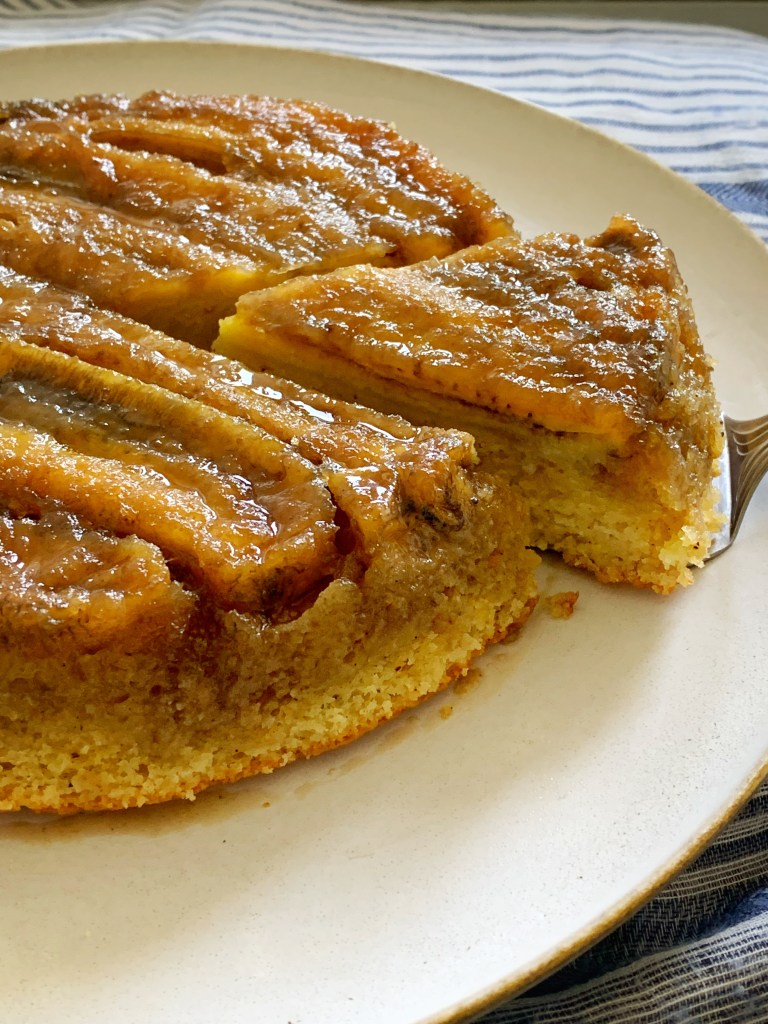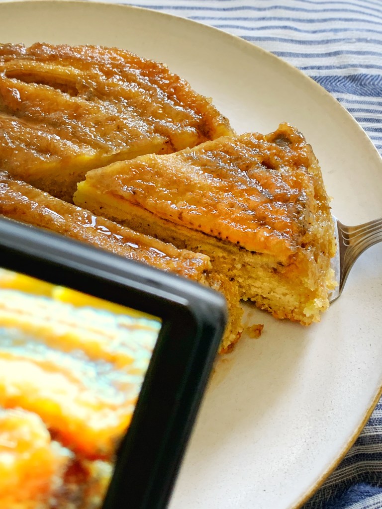 La ricetta viene dal bellissimo blog di Nik Sharma https://niksharmacooks.com/ghee-and-cardamom-scented-upside-down-banana-cake/?format=amp