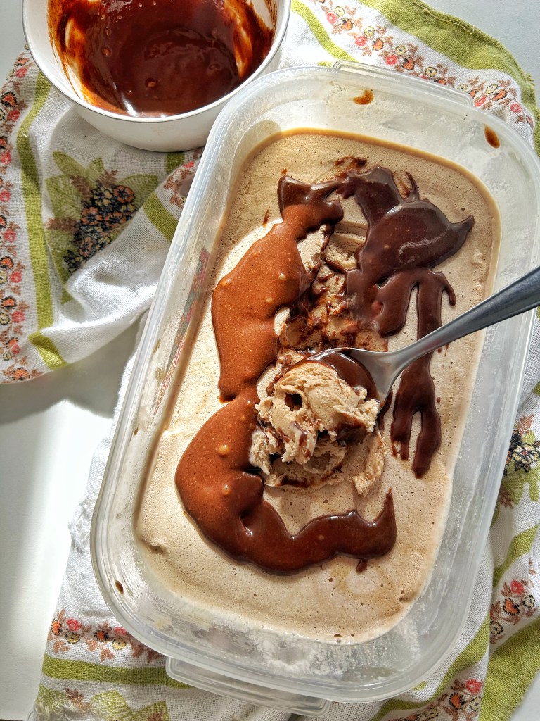 Per il gelato, mettere tutti gli ingredienti nella ciotola di un mixer. Con l’accessorio frusta, montare ad alta velocità per 6-7 minuti, o fino a quando non si saranno addensati fino a raggiungere picchi medi, della consistenza di un gelato morbido e sciolto. Trasferire in un contenitore largo, lisciando la parte superiore. Sigillare e congelare per 1 ora.