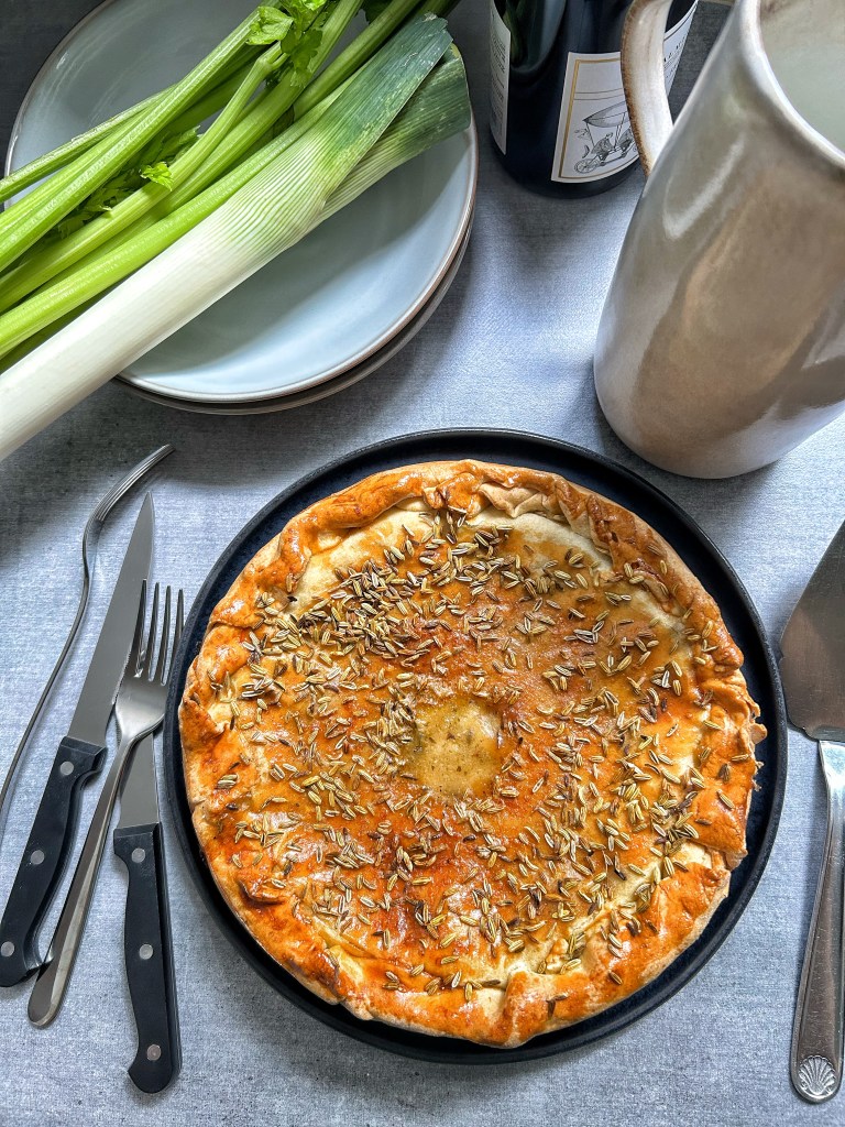 PS Scrive Nigel Slater che la versione originale di questa “pie”, che ho trovato sul suo libro “A Cook’s Book”, conteneva prugne secche, un’aggiunta che aggiunge al ripieno una ricchezza di sapore indiscutibile. Stavolta le ho omesse, ma la prossima le aggiungerò.