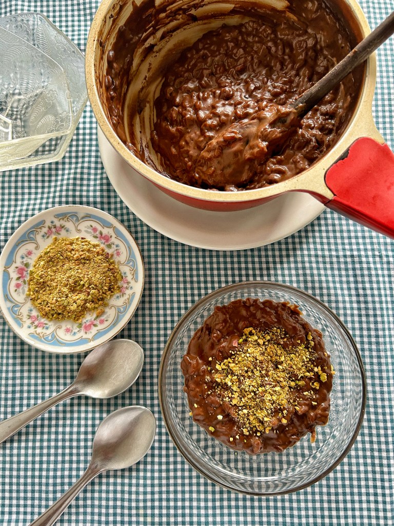 Spesso mi dimentico di avere del riso in dispensa. Il mio primo piatto normale è la pasta. Adoro il riso, anche perché fino a tempo fa pensavo veramente (ma non biasimatemi!) che il riso non facesse ingrassare… hahaha…. Lo amo, insomma, ma lo lascio come ultima alternativa… Perciò da quando la cara Claudia Piastro @piastromexicankitchen ha indetto il suo #forgottencookbookclub per il mese di marzo suggerendoci ricette che parlino di primavera, rinnovamento, di festeggiare il nuovo, di “resettare” e poi ripartire, ma soprattutto, chissà, di pulire un po’ la credenza, io mi sono buttato a capofitto per vedere che cosa avevo tralasciato… ed eccomi qui con un budino di riso meraviglioso, ricetta della brava e simpatica Sabrina Ghayour, da “Persiana Everyday”. Stavolta, Sabrina ha pensato a un sapore completamente diverso, ispirato al ricco e morbido caffè al cardamomo del mondo arabo. Il cioccolato e il caffè sono un’accoppiata perfetta, soprattutto nei dessert, e questo ricco budino di riso è un inizio o una fine di giornata meravigliosamente golosa. Ve lo garantisco. Provate per credere. Mi è piaciuto da matti ! Buon fine settimana !