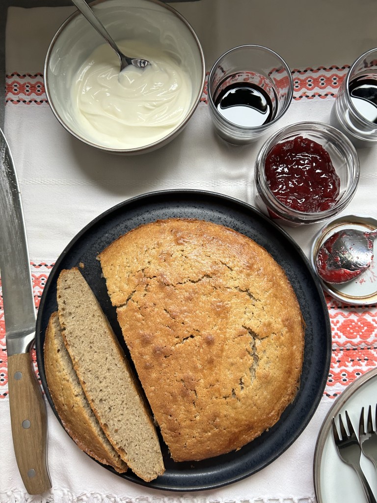Qualche mese ho trascorso alcuni giorni in Lituania per lavoro. Forse vi ricordate qualche foto postata. E sono tornato pieno di idee e buona volontà di ripetere le pietanze salate e dolci che avevo gustato. Questa torta è unica, dono di una chef lituana Greta Zilyte, fatto a Olia Hercules. A parte il fatto che è facilissima e proprio deliziosa, e che vi leccherete il cucchiaio di legno mentre la preparerete (attenti a chi avete intorno! Hahaha)… ma la cosa grandiosa, come racconta la brava Olia nel suo libro, è che da questa torta potete ricavarne altre due o tre. E avrete sempre dolci da far felici tutti. Per esempio, può diventare la base perfetta per un “trifle” o per uno speciale tiramisù che Olia presenta nelle pagine del suo libro “Home Food” (2022). Ma onestamente, questa torta è buonissima così com’è, nuda e cruda, con un caffè o con un tè… tagliatene una bella fetta, come se fosse un pane dolce, con un po’ di marmellata e panna montata, e siete in paradiso…ah, prima che me ne dimentichi: è anche senza glutine, se questo potrebbe interessarvi.