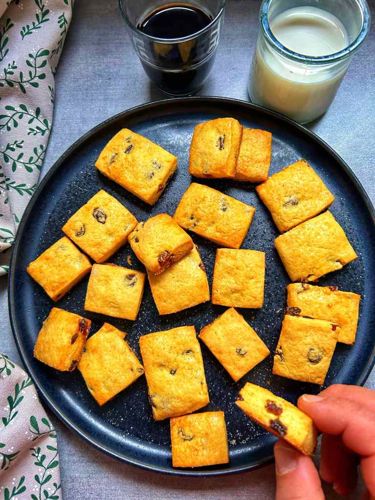 - Disporre i quadrati sulla teglia preparata, lasciando circa un centimetro di spazio tra l’uno e l’altro. Spennellare la parte superiore con l’albume d’uovo e spolverare con lo zucchero semolato.
