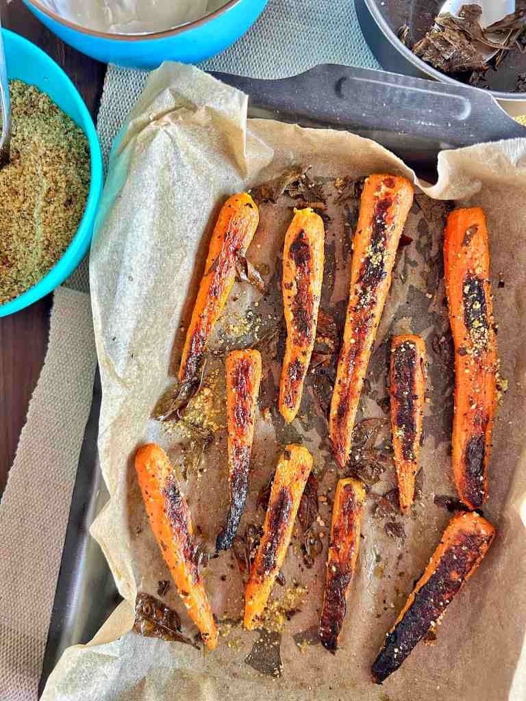 Alzino la mani quanti di voi mangiano le carote e pensano al mitico Bugs Bunny… IO ! Vi ricordate quando dice la sua frase più celebre, mentre mangia una immancabile carota ? “Che succede, amico?” (“What’s Up, Doc?”). Fa venire anche un po’ di rabbia, no ? Personalmente con le carote ho un rapporto alimentare di amore e odio… Ho innumerevoli dessert alle carote nella mia lista di dolci-da-fare ma finora mi sono ancora limitato. Meglio va sul salato, come questa facilissima proposta di Ottolenghi e del suo staff, che nobilita le carote con l’ormai amatissimo dukkah. A proposito, il dukkah si conserva bene in frigorifero per 5 giorni (o più a lungo nel congelatore), quindi preparatene più del necessario. È ottima su ogni piatto: zuppe, verdure arrosto, pollo, pesce alla griglia o insalate in foglia. Prima ricetta salutare di questo 2025. Continuiamo bene, curandoci e amando le cose che facciamo.