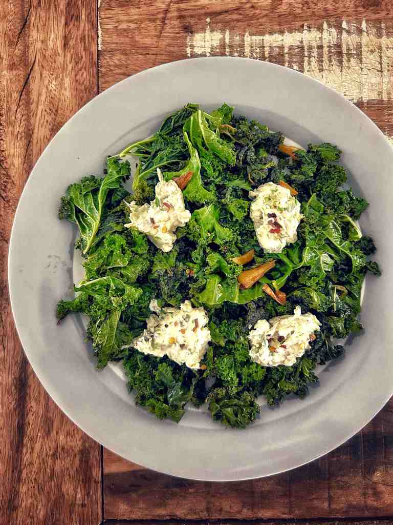 La scorsa volta la mia amica Eiko mi ha detto che non vuole fare spesso ricette di Ottolenghi perché ci sono troppi ingredienti… verissimo! Non posso darle torto. E poi si fa la foto (perché ormai prima la foto e poi si mangia….) e il risultato apparentemente vi sembrerà modesto. Invece dietro c’è una sinfonia di sapori, un profumo intenso in cucina (anche eccessivo, talvolta) e ovviamente una miriade di ingredienti ! Ma vale tantissimo la pena… come questa ricetta che esalta e nobilita il cavolo riccio con una stupenda salsa di erba cipollina arrostita. Fatela. Senza pensare ai “se” e ai “ma”. Magari preparate solo la salsa se volete mantenere le cose semplici: è deliziosa spalmata su bruschette o al barbecue, oppure accanto a spighe di mais grigliate. Il peperoncino rosso fritto e le sottili scaglie d’aglio sono essenziali. Non snobbateli. Forniscono calore e croccantezza e fanno da supporto a una salsa morbida e cremosa. Se volete, utilizzate il cavolo lacinato al posto del cavolo riccio. Ottolenghi dice che qui l’erba cipollina più è bruciacchiata, più il suo sapore sarà buono e affumicato. Mi raccomando, però, assicuratevi che la vostra cucina sia ben ventilata.