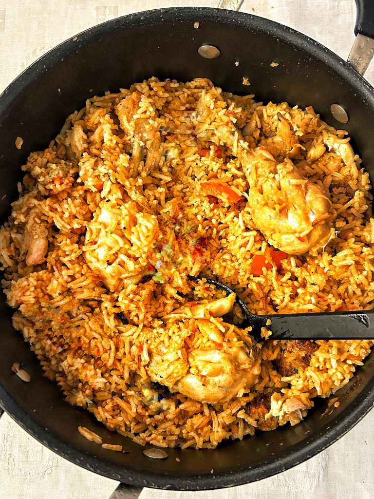 L’ “arroz con pollo” è un piatto tradizionale del continente che mi ospita, e che amo, l’America Latina. Consiste tipicamente in pollo cucinato con riso, cipolle, zafferano e una potenziale pletora di altri cereali o verdure. Non si sa bene se sia nato in Spagna o a Porto Rico. Per i portoricani, orgogliosi della creazione di questa pietanza familiare e molto gustosa, dicono che l’arroz con pollo non può essere preparato senza birra e senza olio di annatto, e che lo zafferano non può essere usato come sostituto. L’annatto è usato frequentemente nella cucina portoricana, così come la birra, che si usa anche nel pollo “guisado” e nell’ “asopao de pollo” (pollo brasato e stufato). Ma, come si sa, le variazioni in cucina sono all’ordine del giorno….e trovare l’annatto, per esempio, è quasi impossibile (qui l’ho trovato solo su Amazon). Per chi fosse curioso, l’annatto è un colorante alimentare giallo-rossiccio, estratto da una pianta spontanea dell’Amazzonia coltivata soprattutto nell’America centrale e in India. Nella ricetta che io ho usato non c’era la birra, e perciò non l’ho messa, e ho usato quello che in Brasile si chiama “colorau” o “colorífico”… Un piatto facile facile, o come dicono gli anglofoni, un piatto “pigro”, perché si deve solo lasciare che cuocia tutto da solo, ed è ottimo da preparare a metà settimana o il venerdì sera.