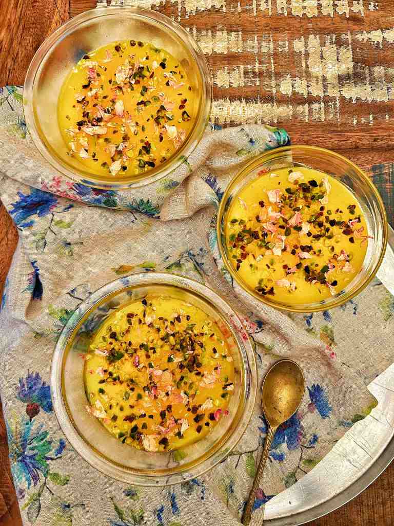 Ho sempre un timore reverenziale a fare dolci siciliani. Gli ingredienti che trovo non hanno il gusto di quelli nostrani. Poco ma sicuro. Alcuni mi dicono che dovrei riprendere le mie origini culinarie, visto che sono all’estero, e difendere il nostro patrimonio. Ma io da buon comparatista vedo meglio tutte le trasversalità che le profondità… Insomma, tutto questo per dirvi che questa ricetta afghana mi ha ricordato la freschezza del “gelo” siciliano… che sia d’anguria, o di mandarino, o d’arancia… presente nelle tavole della Sicilia, soprattutto in estate. “Gelo” è un modo di dire non solo del dessert freddo, ma anche della “gelatina”, “jelly” (in inglese…). Il “maghoot” è una gelatina tradizionalmente preparato in occasione di eventi celebrativi come i matrimoni. Lo potrete trovare anche nella cucina persiana. Ciò mi fa pensare a quanti transiti culinari abbiamo in comune con i paesi mediorientali…. Gli ingredienti sono semplici e può essere preparato in una vasta gamma di colori, rendendolo un dolce semplice e festoso da aggiungere al tavolo dei dolci. Qui ci vanno, come da programma afghano, l’acqua di rose, i pistacchi, lo zafferano, ma ci potrebbe stare perfettamente l’essenza di fiori d’arancio, o all’occidentale, di limone, o la vaniglia, insomma potete sbizzarrirvi. Certo, se la farete allo stile afghano, avrete sapori nuovi e inabituali al vostro palato. Se siete avventurieri come me, provatelo. È rinfrescante e speciale. Vi sembrerà di essere in un matrimonio mediorientale, come in un film.