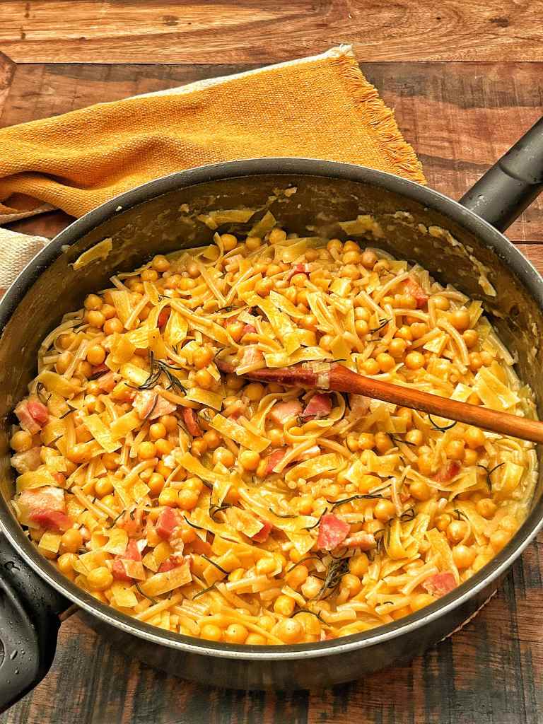 Come si suol dire, le “ultime parole famose”… Cambio idea, non faccio più i ceci, i ceci sono rimandati a una data da destinare… e quando li ho finalmente preparati, mi sono distratto e i buoni consigli sono stati dimenticati. Risultato: la prima volta, ceci durissimi. Ma siccome “sbagliando si impara”, tutte le altre volte che ho fatto la pasta coi ceci è stato un successo. Come in questa occasione. Una bontà assoluta, un piatto che ti abbraccia e ti fa ricordare delle tue origini meridionali.