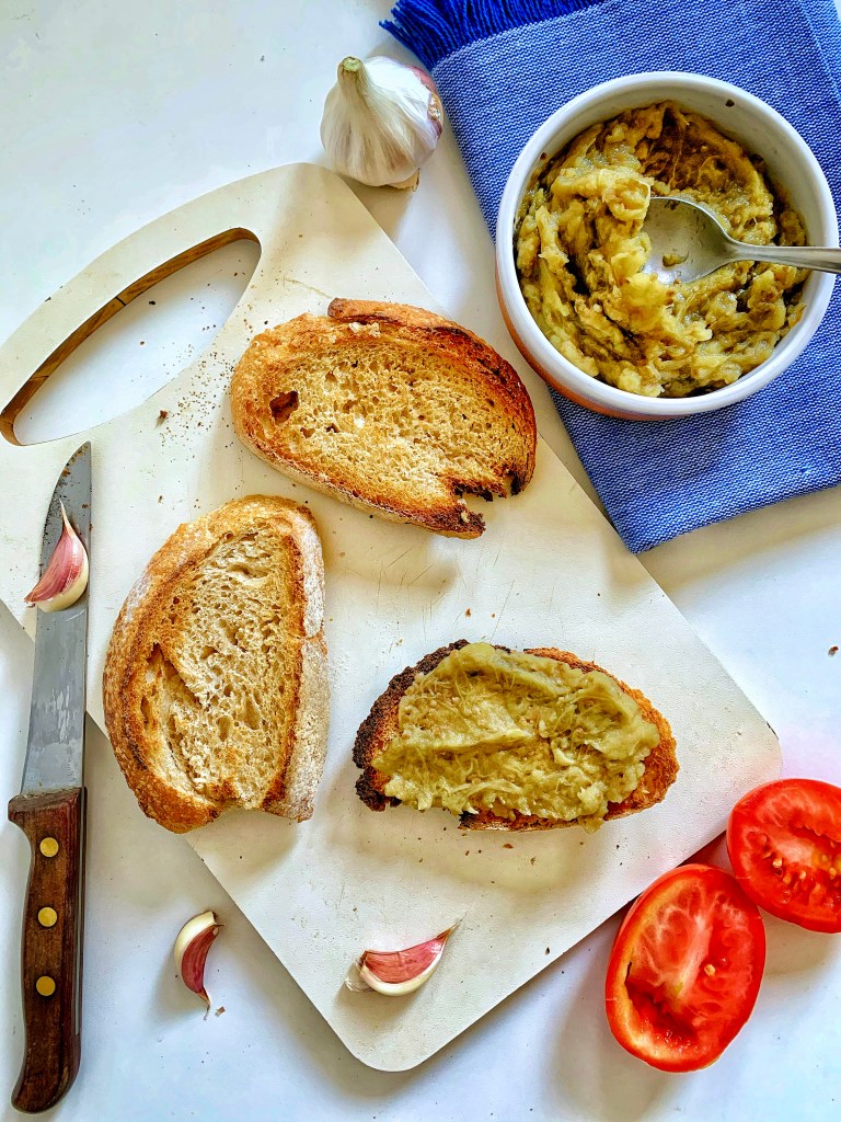 È delizioso e setoso e rappresenta un ottimo antipasto da condividere. Non lesinate con l’aglio (sempre se vi piace!) e, se volete, io metterei sopra anche un filo di olio extravergine di oliva, perché il risultato dev’essere quello di un cibo ben condito e molto familiare.