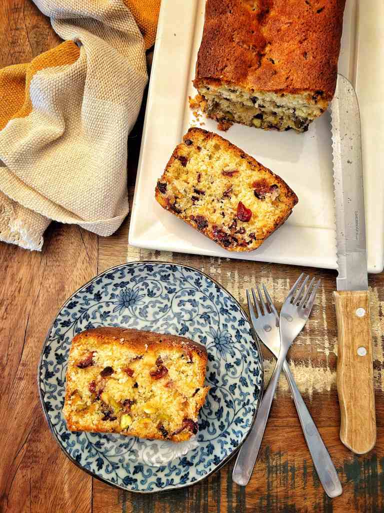 - Mescolare la farina, le spezie, il sale, i cranberries e i pistacchi, quindi mettere da parte.