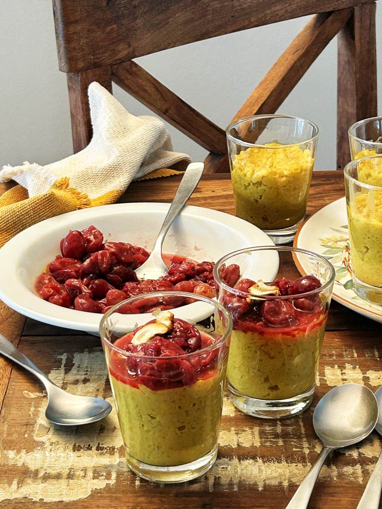 Sciacquate il riso e mettetelo a mollo in abbondante acqua fredda per 1 ora. Mentre il riso è in ammollo, preparare la composta d’uva: mettere tutti gli ingredienti in una casseruola media e portare a ebollizione, poi cuocere a fuoco medio-basso, finché l’uva non inizia ad ammorbidirsi e a sfaldarsi – circa 15 minuti. Schiacciare leggermente alcuni acini con il dorso di un cucchiaio e mettere da parte a raffreddare.