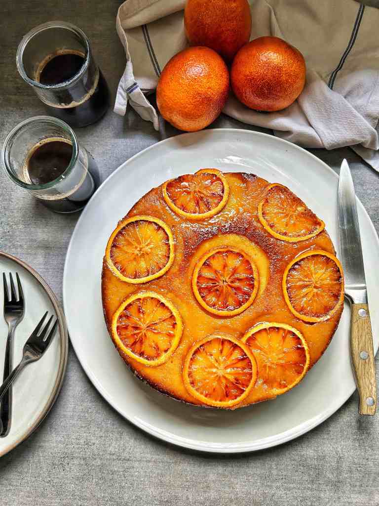 Buona Pasqua con una torta che riassume l’essenza dell’Italia: c’è la polenta, la ricotta, l’olio di oliva, e le arance sanguigne… Viene da un libro bellissimo, “Bitter Honey”, di Letitia Clark, che racconta in modo suggestivo la cucina sarda. È, come dice Letitia, una torta perfetta: soffice, ricca e leggera allo stesso tempo. La polenta le conferisce una piacevole croccantezza sui bordi. Rimarrà morbida e umida per giorni, anche se è improbabile che duri così a lungo, perché è particolarmente deliziosa a colazione con un espresso. Le arance sanguigne hanno l’aspetto più scenografico con la loro polpa scarlatta, ma le arance normali funzioneranno altrettanto bene. Una nota finale: l’impasto vi sembrerà molto liquido una volta pronto, ma non allarmatevi. È esattamente come dovrebbe essere…… Ancora tanti auguri di Buona Pasqua 🐣!